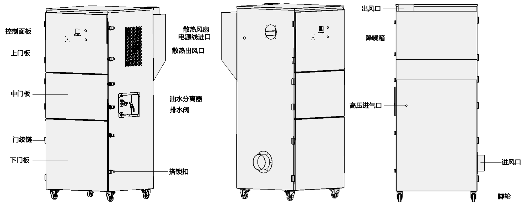 SRA-3000XPF防爆脉冲反吹清灰净化机高压风机和三层过滤系统组合而成。